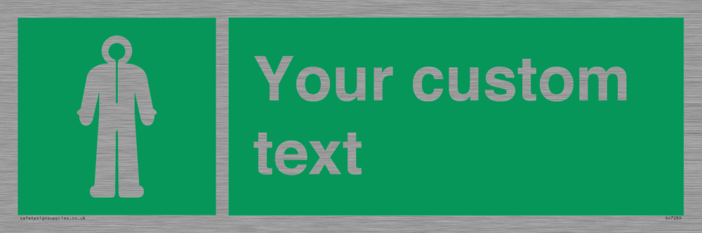 Suitable for mounting on a flat surface. Suitable for mounting on a door. Custom signs contain the text required by the customer. With your your text and a standard safety sign symbol - a bespoke sign can fit any requirement.