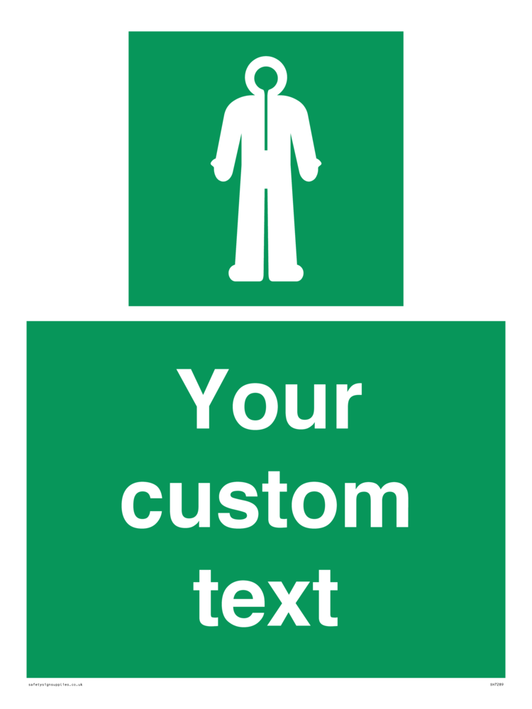This product is design to be mounted on the ceiling. Custom signs contain the text required by the customer. With your your text and a standard safety sign symbol - a bespoke sign can fit any requirement.