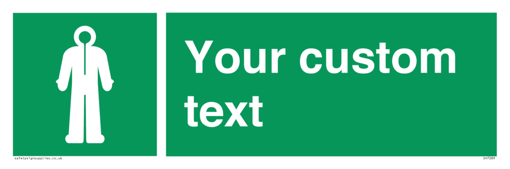This product is design to be mounted on the ceiling. Custom signs contain the text required by the customer. With your your text and a standard safety sign symbol - a bespoke sign can fit any requirement.