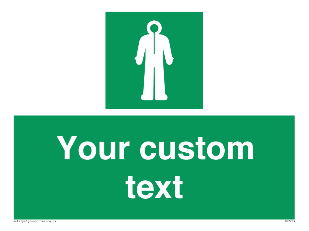 Suitable for mounting on a flat surface. Suitable for mounting on a door. Suitable for mounting on cladding. This product is design to be mounted on the ceiling. Custom signs contain the text required by the customer. With your your text and a standard safety sign symbol - a bespoke sign can fit any requirement.