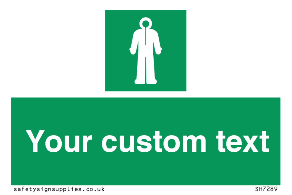 Suitable for mounting on a flat surface. Suitable for mounting on a door. Suitable for mounting on cladding. This product is design to be mounted on the ceiling. Custom signs contain the text required by the customer. With your your text and a standard safety sign symbol - a bespoke sign can fit any requirement.