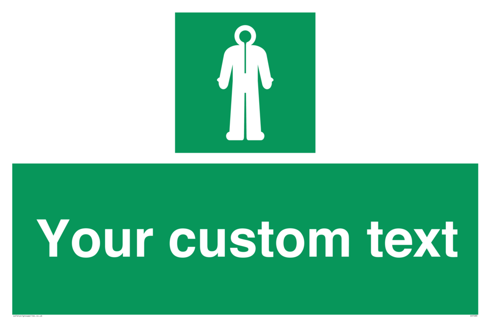 Suitable for mounting on a flat surface. Suitable for mounting on a door. Suitable for mounting on cladding. This product is design to be mounted on the ceiling. Custom signs contain the text required by the customer. With your your text and a standard safety sign symbol - a bespoke sign can fit any requirement.