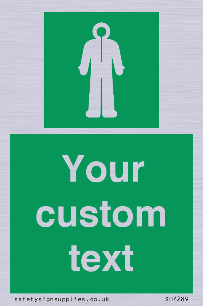 Suitable for mounting on a flat surface. Suitable for mounting on a door. Custom signs contain the text required by the customer. With your your text and a standard safety sign symbol - a bespoke sign can fit any requirement.