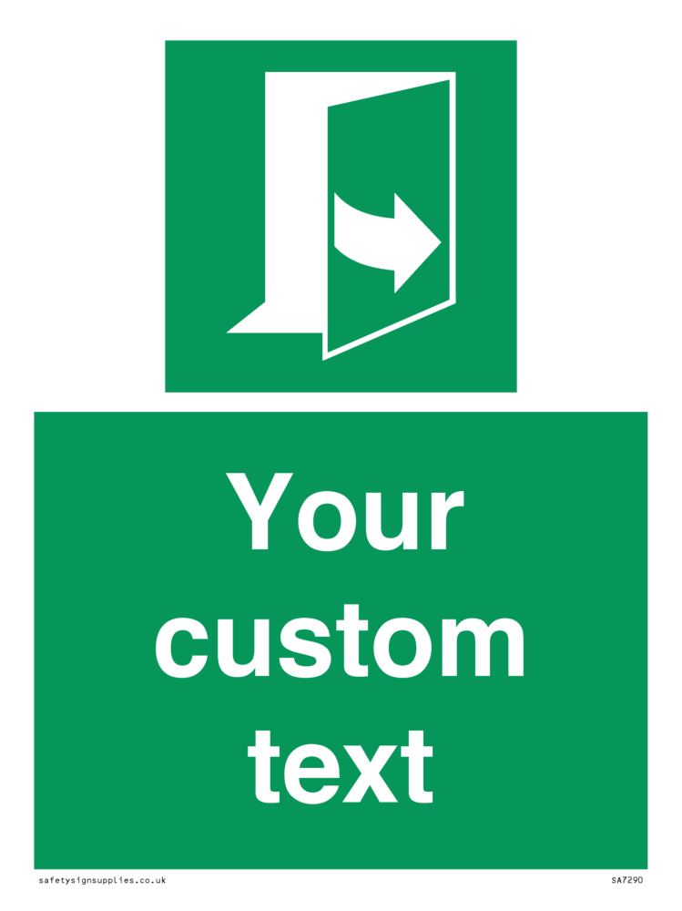 Suitable for mounting on a flat surface. Suitable for mounting on a door. Suitable for mounting on cladding. This product is design to be mounted on the ceiling. Custom signs contain the text required by the customer. With your your text and a standard safety sign symbol - a bespoke sign can fit any requirement.