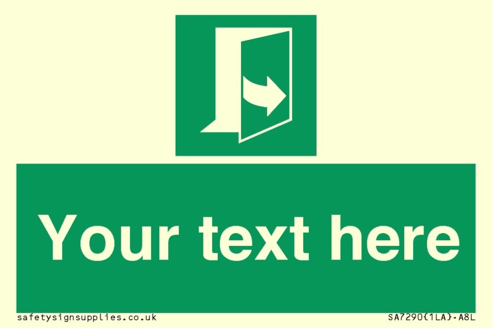 Sign Text: Your text here Dimensions: 75x50mm Material: Vinyl Photoluminescent sticker Orientation: Landscape Text Colour: White Background Colour: Green More...