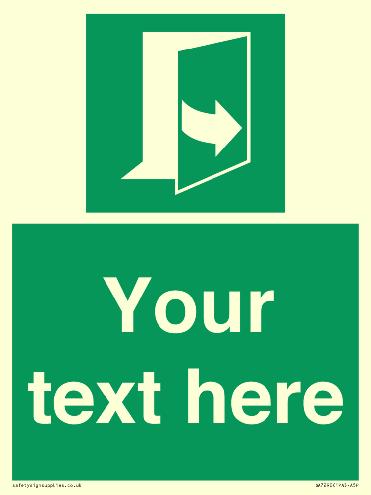 Image content: Doorway with door opening inwards, curved arrow pointing to the right.