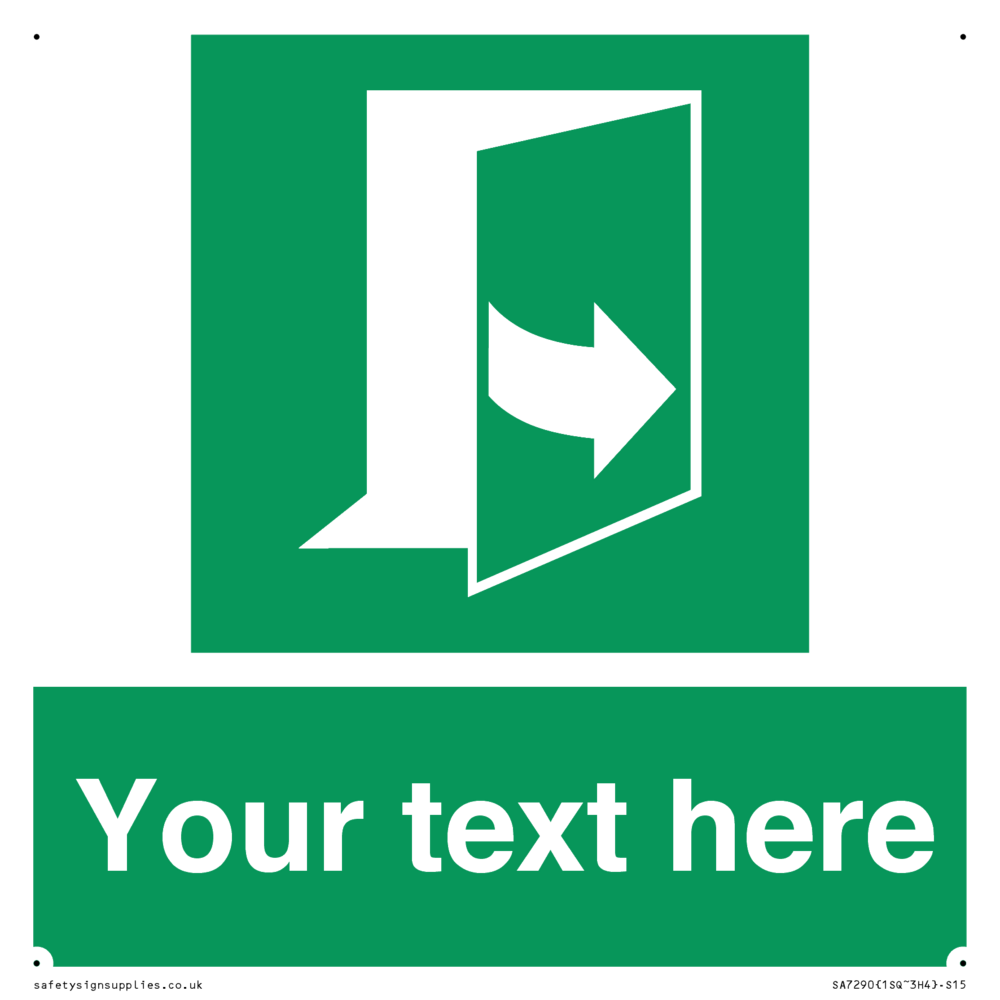 Image content: Doorway with door opening inwards, curved arrow pointing to the right.