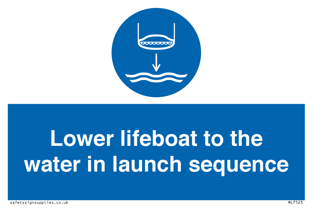 ISO 7010-M039 Mandatory: Lower lifeboat to the water in launch sequence