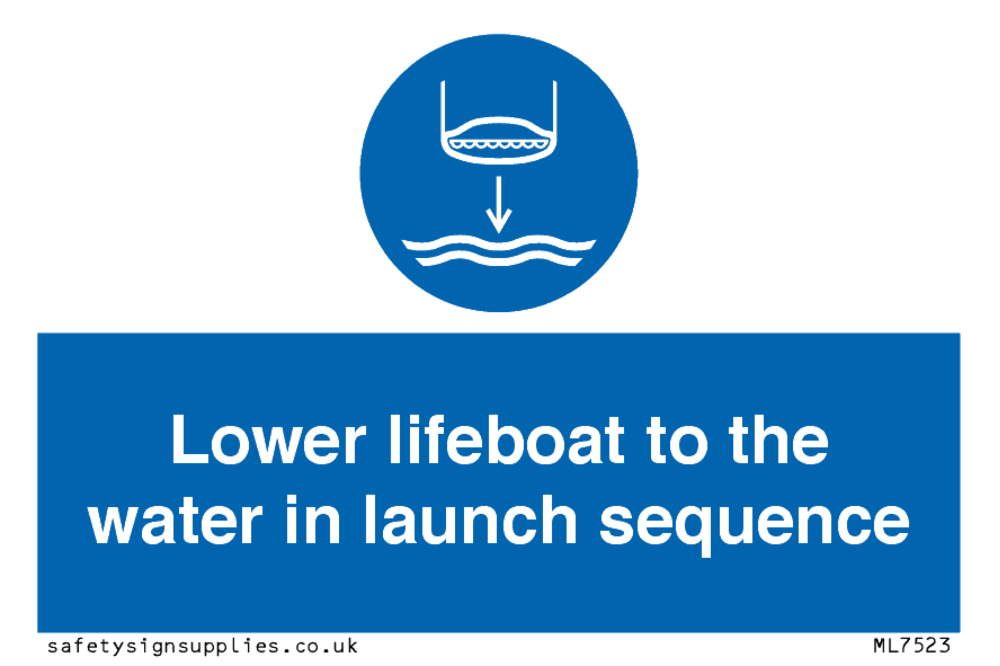 Sign Text: Lower lifeboat to the water in launch sequence