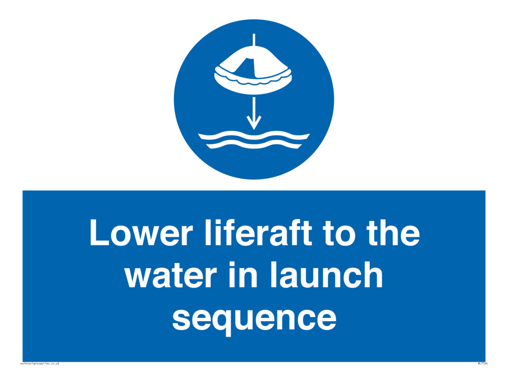 ISO 7010-M040 Mandatory: Lower liferaft to the water in launch sequence