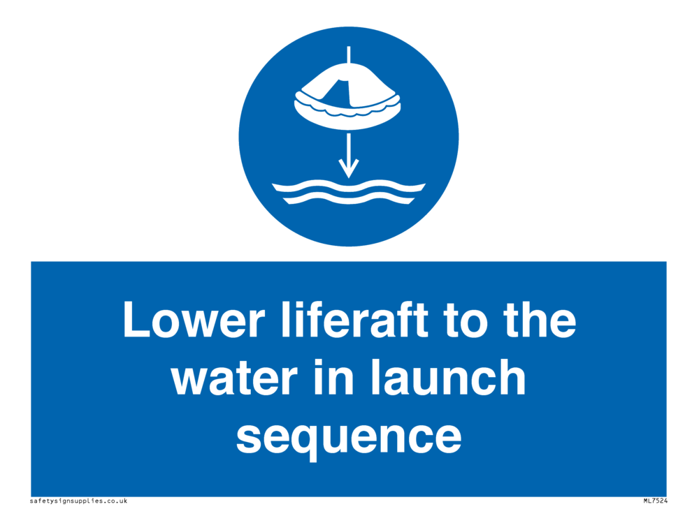ISO 7010-M040 Mandatory: Lower liferaft to the water in launch sequence