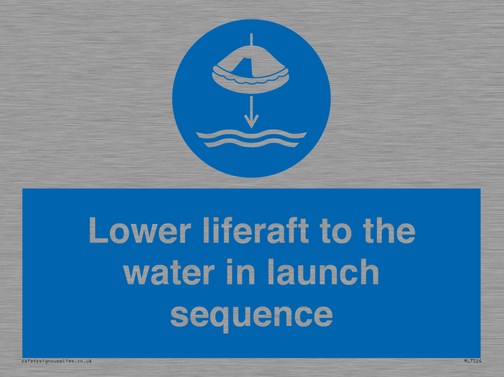 ISO 7010-M040 Mandatory: Lower liferaft to the water in launch sequence
