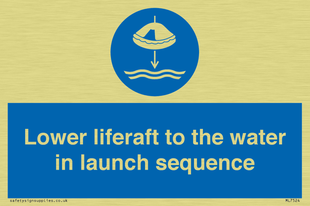 Sign Text: Lower liferaft to the water in launch sequence