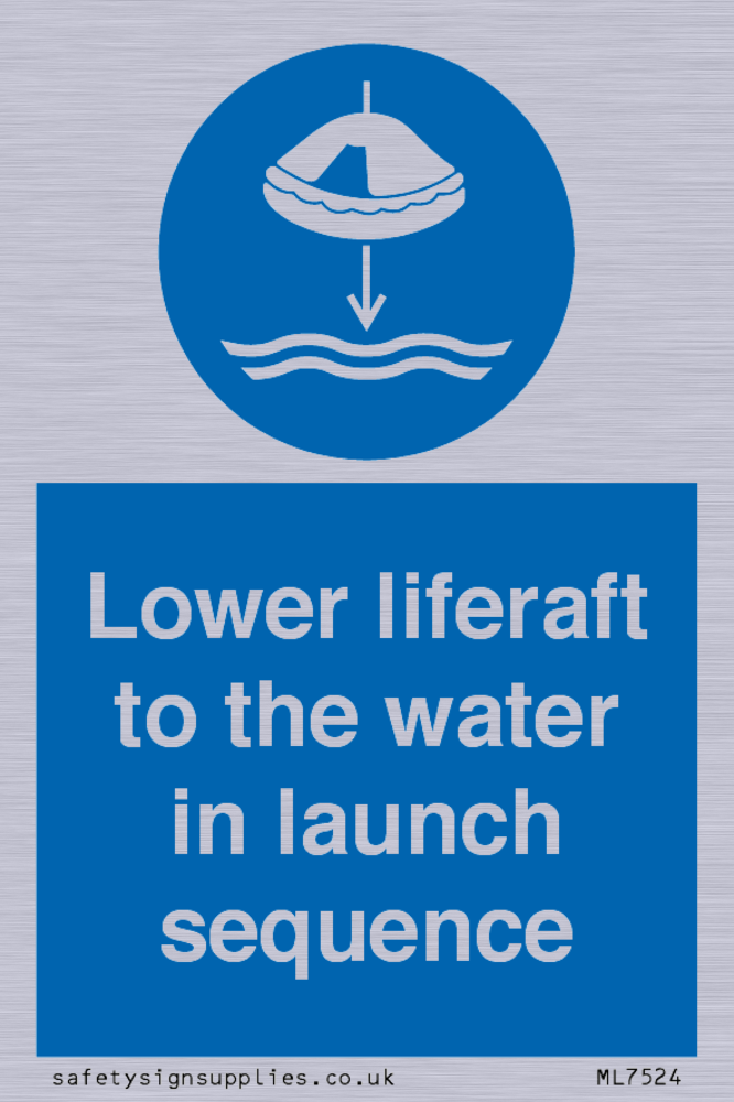 ISO 7010-M040 Mandatory: Lower liferaft to the water in launch sequence