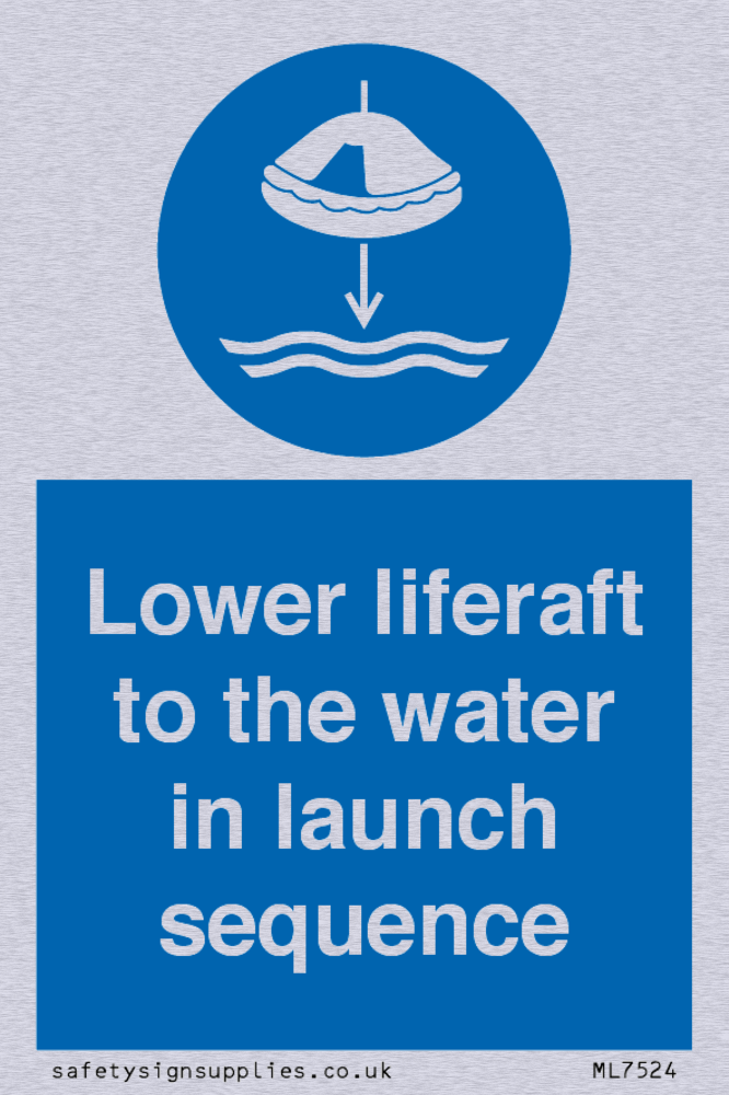 ISO 7010-M040 Mandatory: Lower liferaft to the water in launch sequence