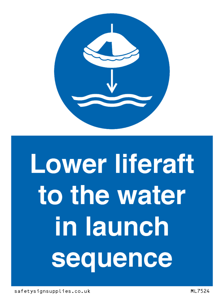 ISO 7010-M040 Mandatory: Lower liferaft to the water in launch sequence