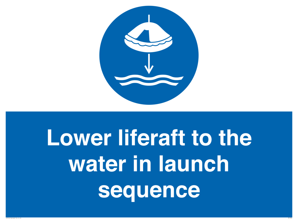 ISO 7010-M040 Mandatory: Lower liferaft to the water in launch sequence
