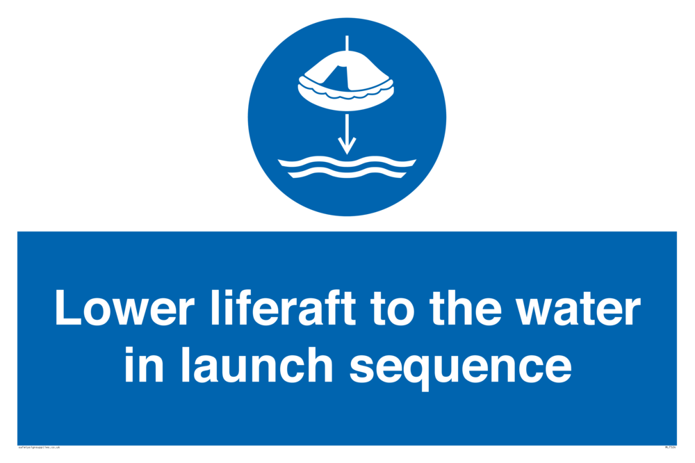 ISO 7010-M040 Mandatory: Lower liferaft to the water in launch sequence
