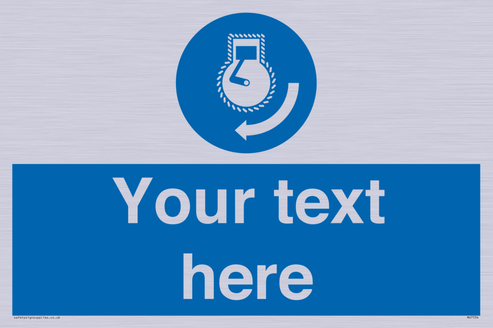 Suitable for hanging installation. Suitable for mounting on a flat surface. Suitable for mounting on a door. Custom signs contain the text required by the customer. With your your text and a standard safety sign symbol - a bespoke sign can fit any requirement. Signs in this range are from our standard range.