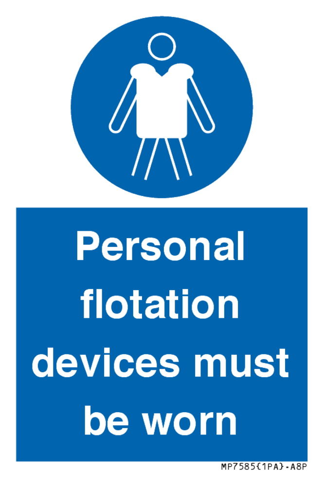 Sign Text: Personal flotation devices must be worn