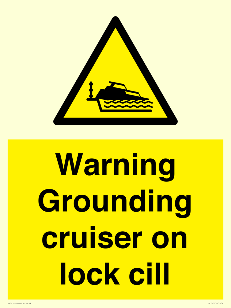 Sign Text: Warning Grounding cruiser on lock cill