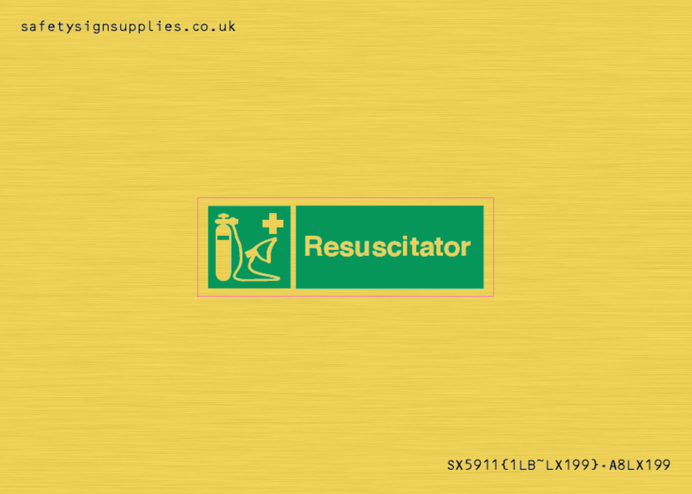 Sign Text: Resuscitator Dimensions: 30x10mm Material: Vinyl Gold sticker Text Colour: White Background Colour: Green Recommended Fixings: Comes with Self Adhesive More...