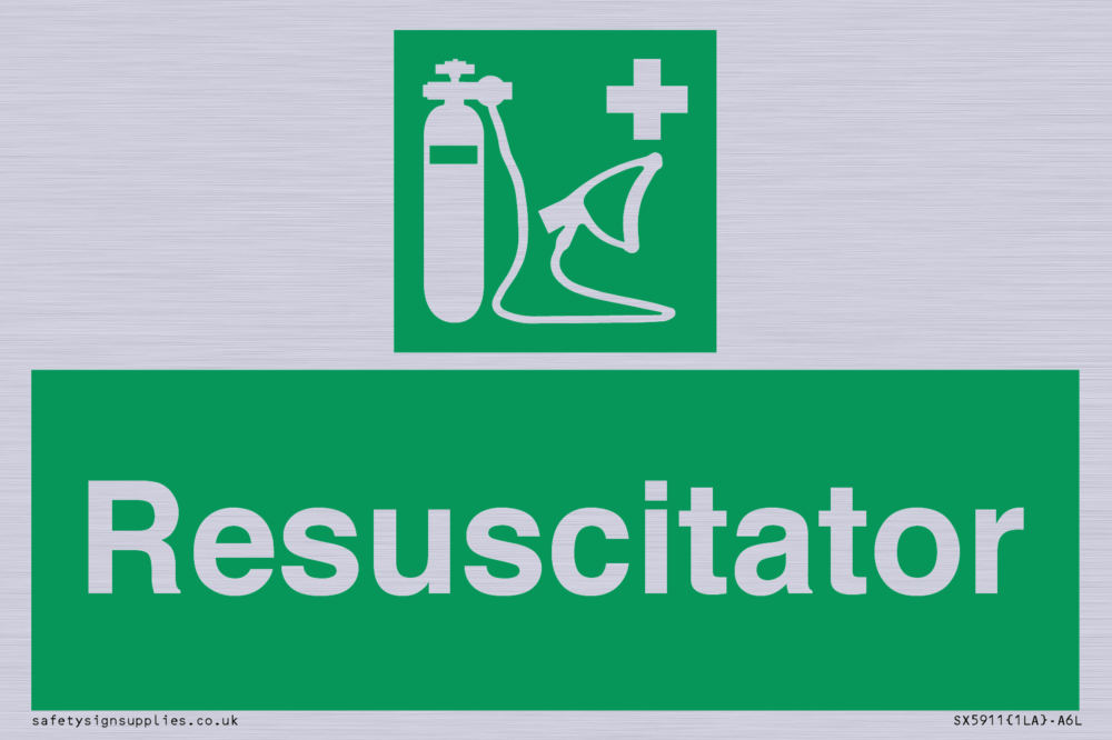 Sign Text: Resuscitator Dimensions: 150x100mm Material: Plastic Semi-rigid Silver Orientation: Landscape Text Colour: White Background Colour: Green More...