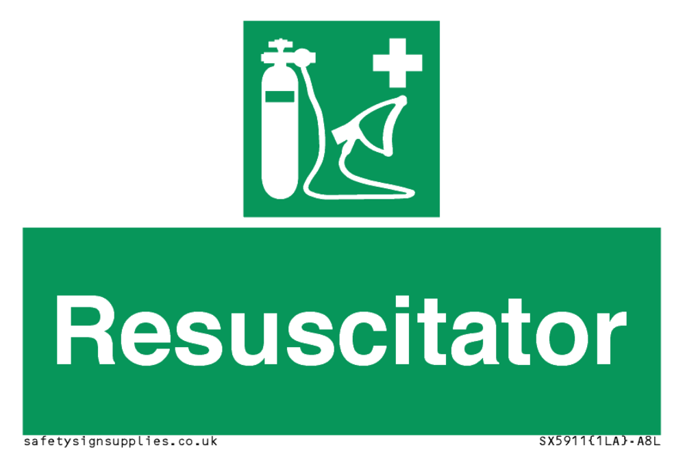 Sign Text: Resuscitator Dimensions: 75x50mm Material: Plastic Semi-rigid 1mm Orientation: Landscape Text Colour: White Background Colour: Green More...