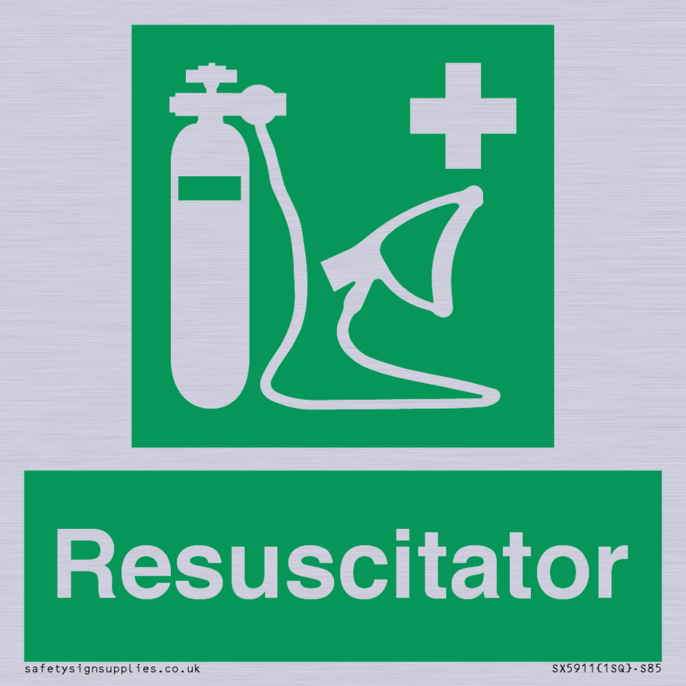 Sign Text: Resuscitator Dimensions: 85x85mm Material: Vinyl Silver sticker Orientation: Square Text Colour: White Background Colour: Green More...