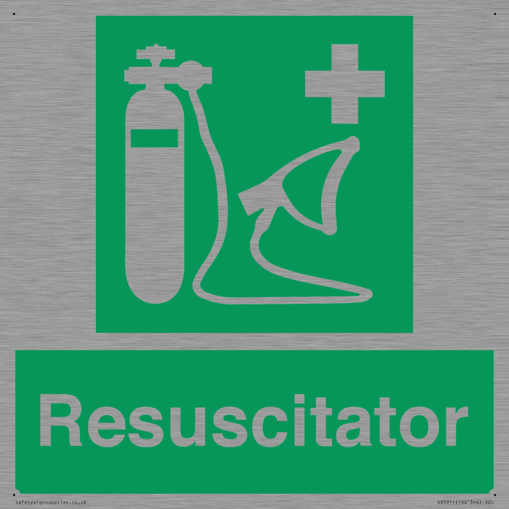 Sign Text: Resuscitator Dimensions: 200x200mm Material: Stainless Steel Orientation: Square Text Colour: White Background Colour: Green More...
