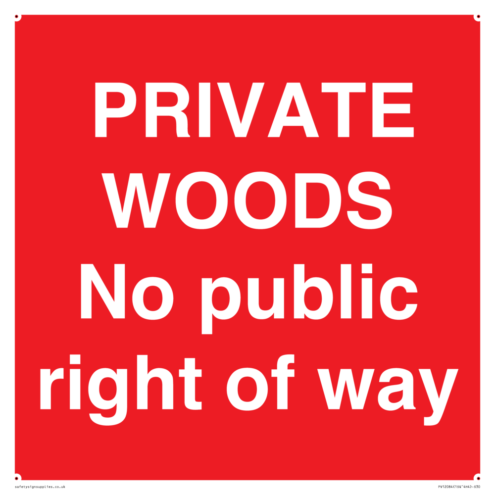 PRIVATE WOODS No public right of way Sign