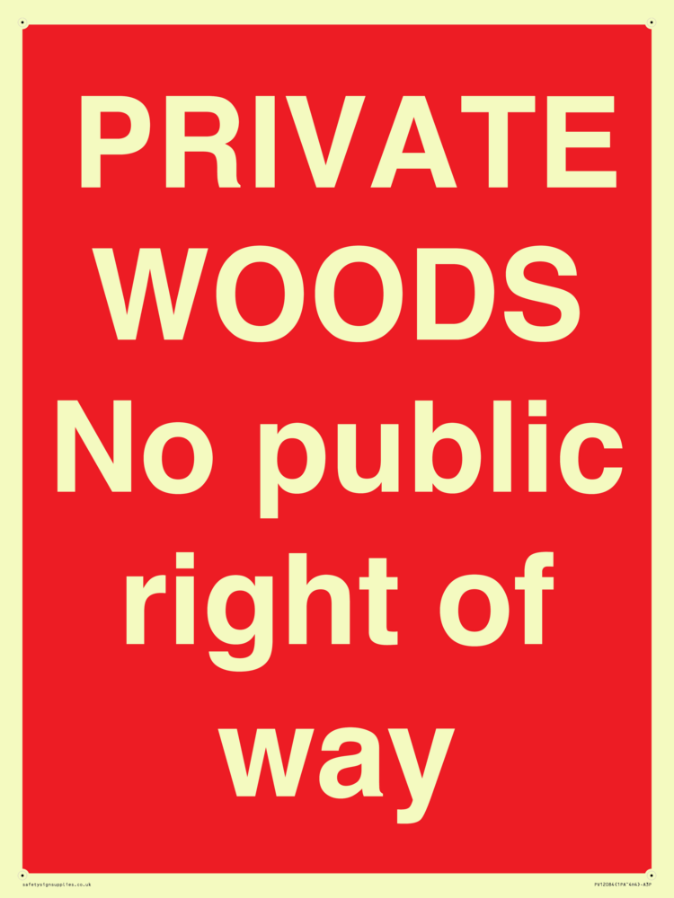 PRIVATE WOODS No public right of way Sign