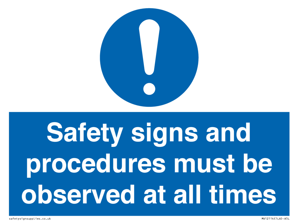 Safety signs and procedures must be observed at all times