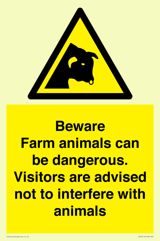 Beware Farm animals can be dangerous. Visitors are advised not to interfere with animals