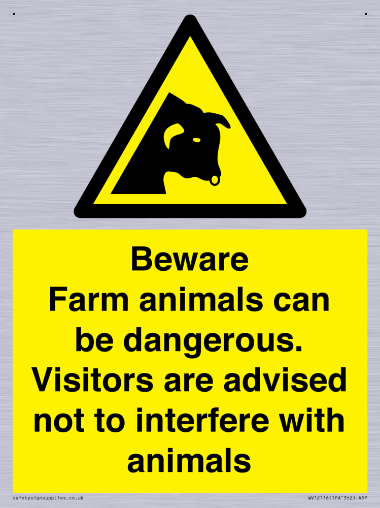 Beware Farm animals can be dangerous. Visitors are advised not to interfere with animals