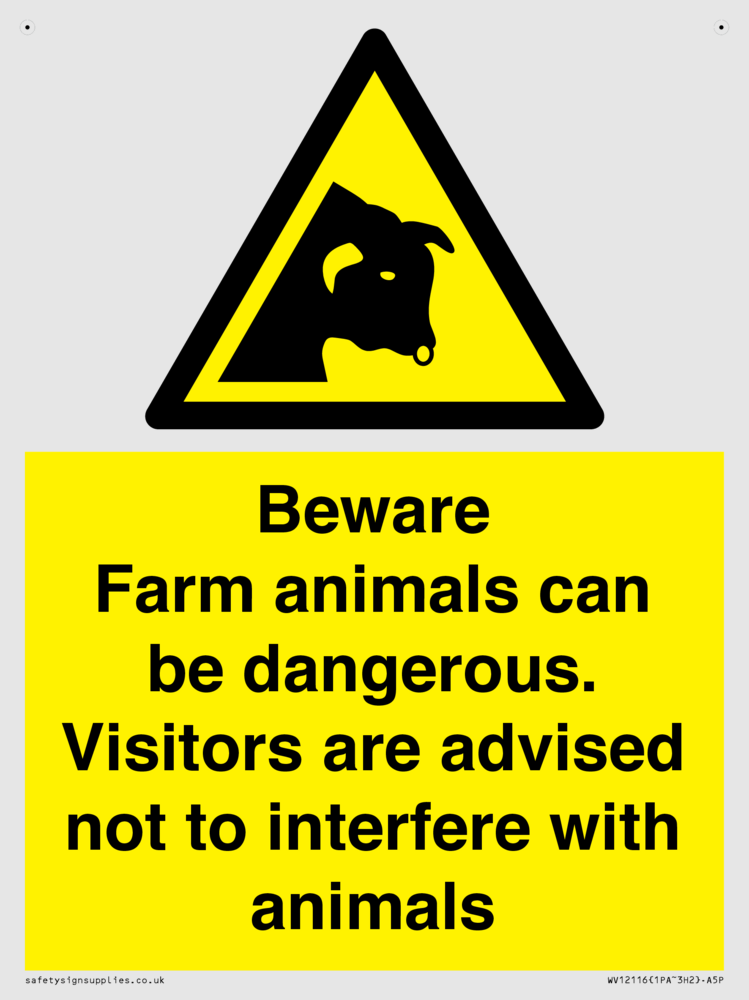 Beware Farm animals can be dangerous. Visitors are advised not to interfere with animals