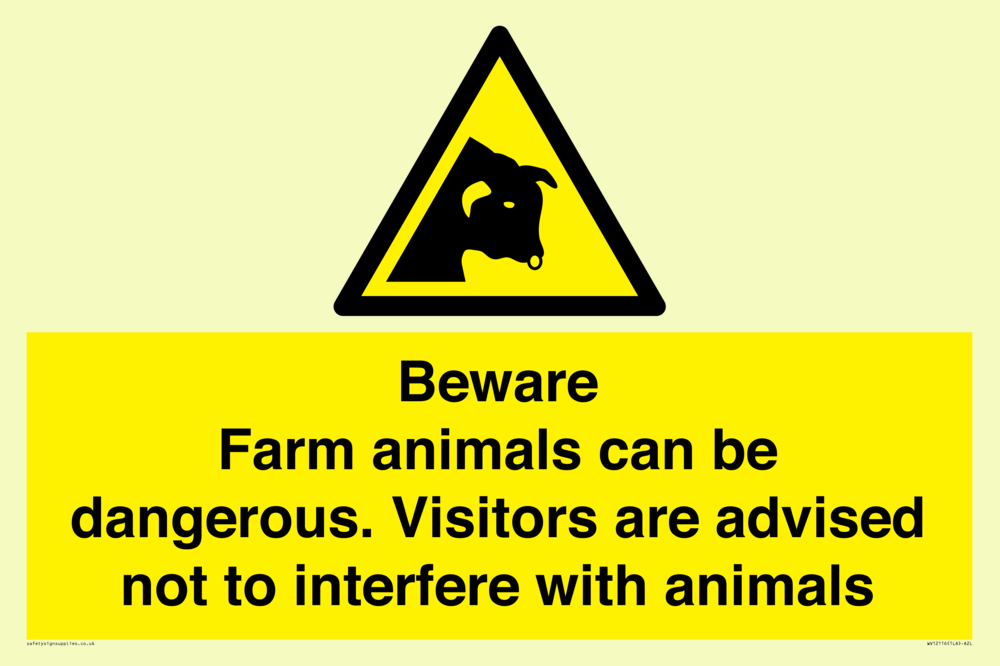 Beware Farm animals can be dangerous. Visitors are advised not to interfere with animals