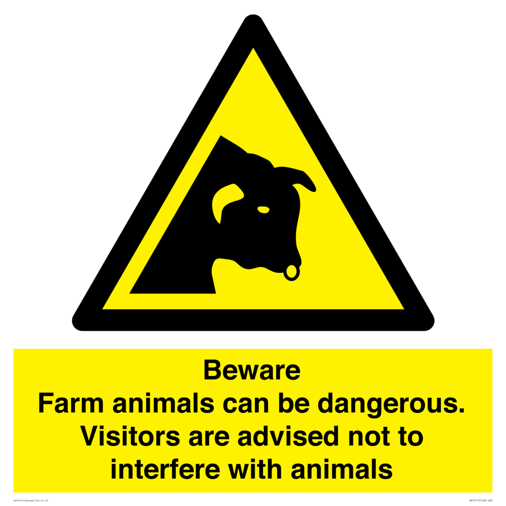 Beware Farm animals can be dangerous. Visitors are advised not to interfere with animals
