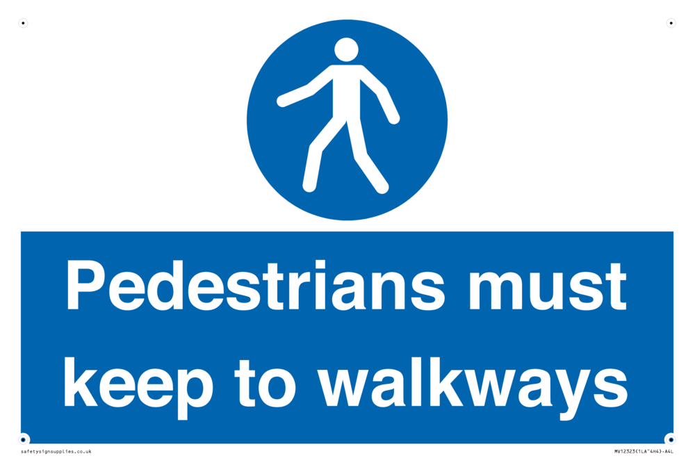Pedestrians must keep to walkways Sign