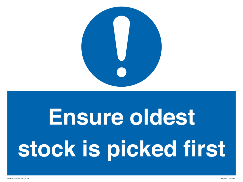 Ensure oldest stock is picked first sign