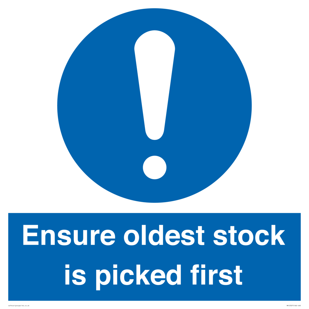 Ensure oldest stock is picked first sign
