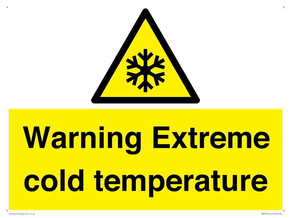 Sign Text: Warning Extreme cold temperature