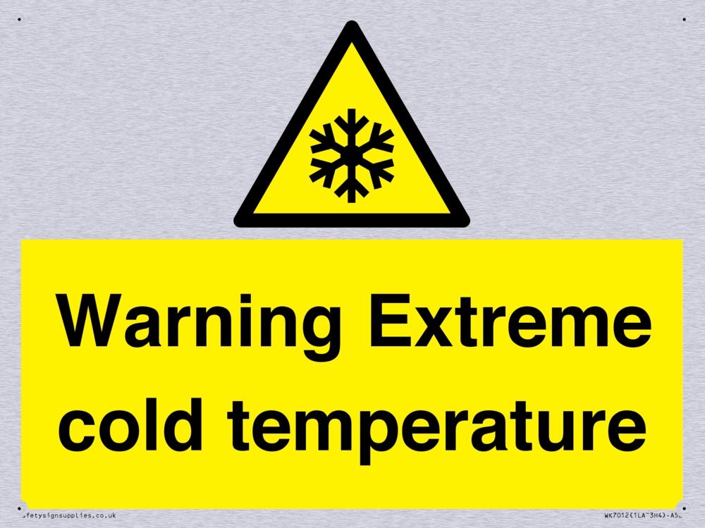 Sign Text: Warning Extreme cold temperature