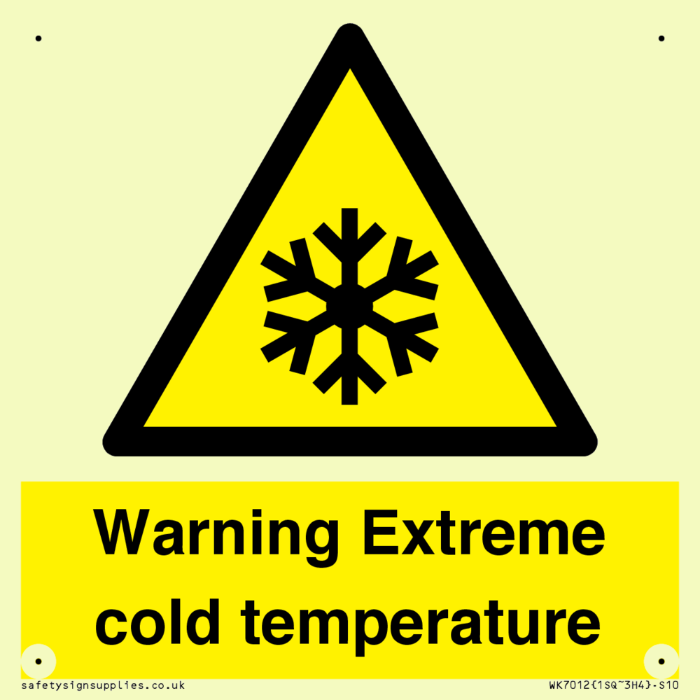 Sign Text: Warning Extreme cold temperature