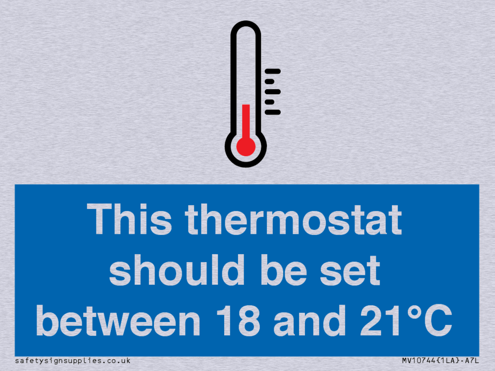 This thermostat should be set between 18 and 21°C Sign