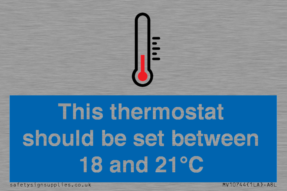 This thermostat should be set between 18 and 21°C Sign