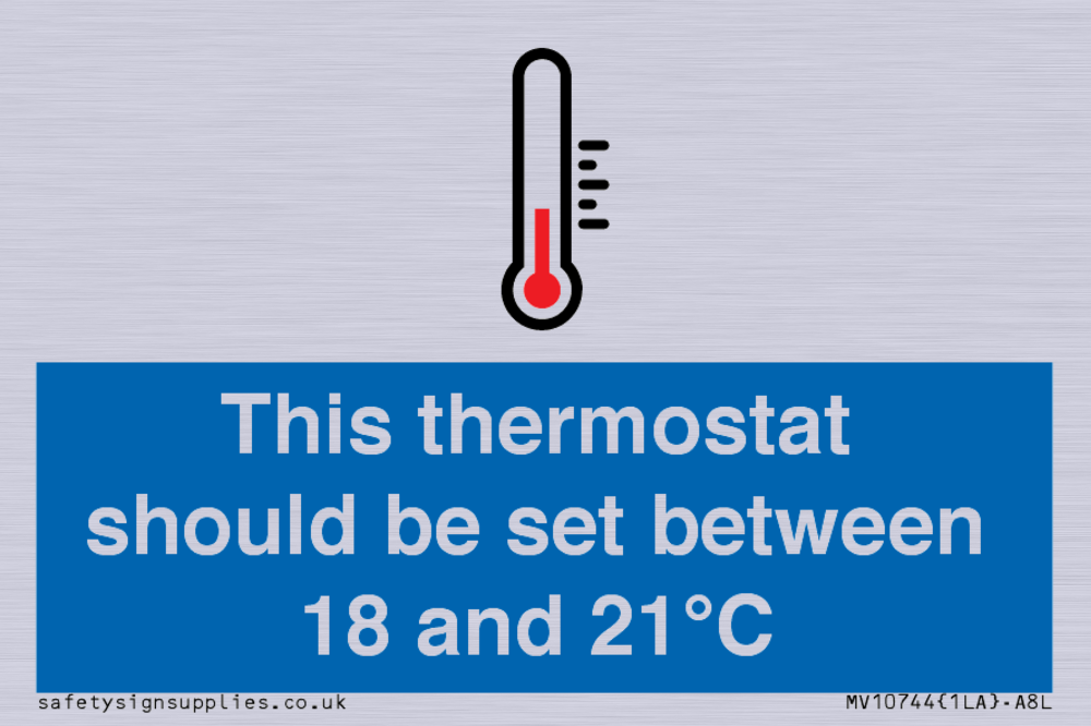 This thermostat should be set between 18 and 21°C Sign