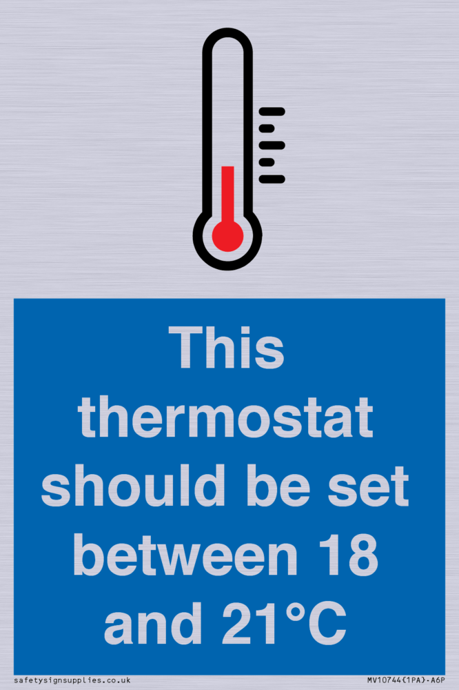 This thermostat should be set between 18 and 21°C Sign