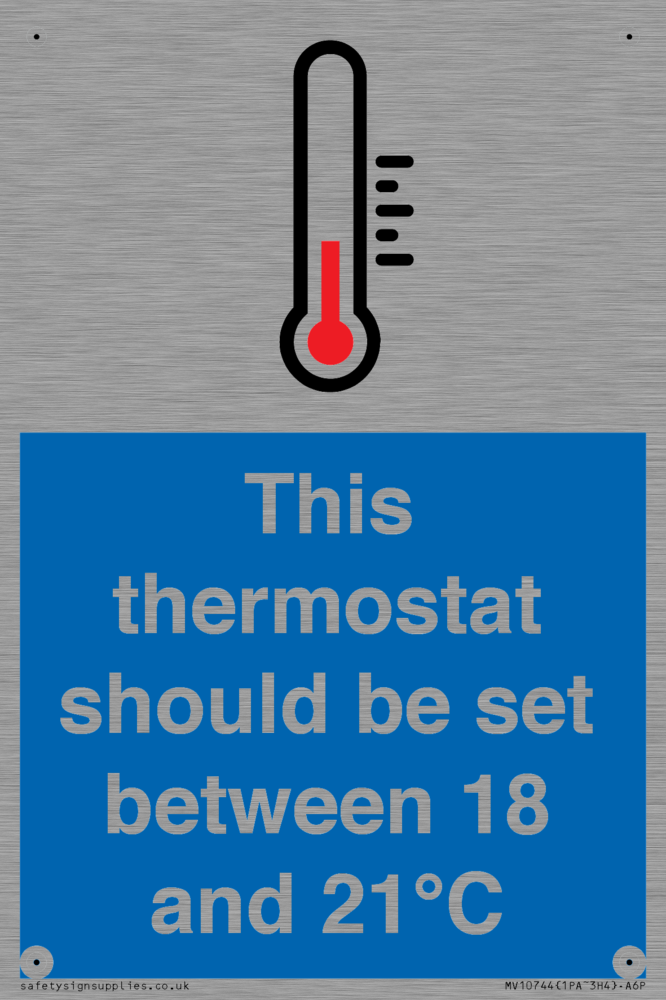 This thermostat should be set between 18 and 21°C Sign