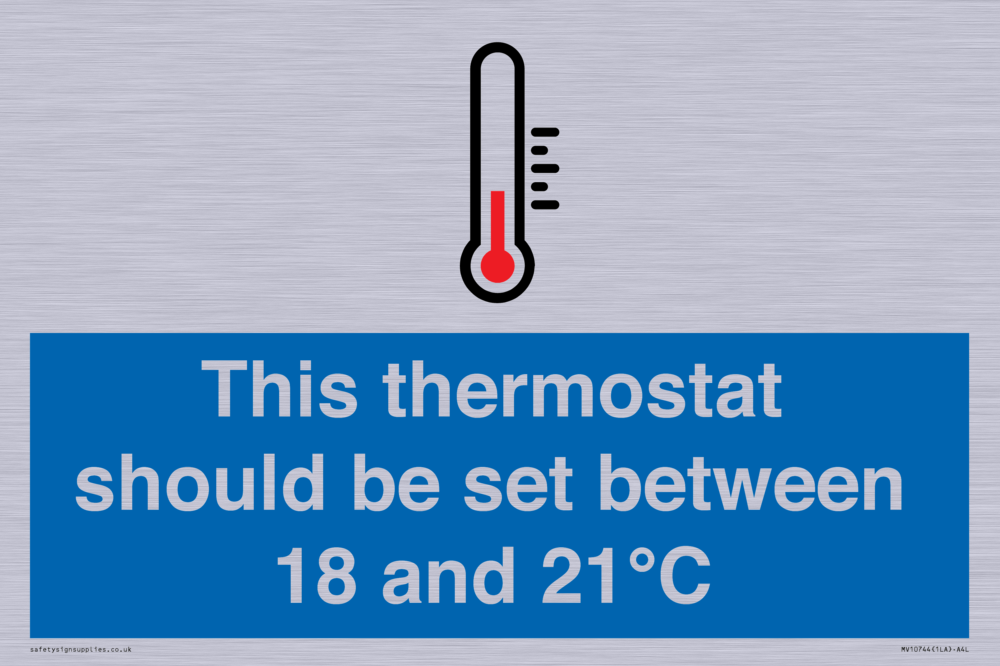 This thermostat should be set between 18 and 21°C Sign